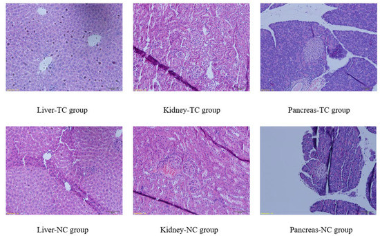 On the last day of the experimental period, all the experimental mice were euthanized by CO2 suffocation. The liver, kidney, pancreas and skeletal muscle of the mice were collected and washed with ice-cold 0.9% NaCl solution, and then drained by filter paper. Liver weight and left kidney weight were measured accurately, and the organ index was calculated. Some of the samples were fixed in 10% neutral buffered formalin for 24 h for further histopathological examination. The liver, kidney, pancreas and skeletal muscle of mice stained with hematoxylin and eosin (H&E) were observed under a microscope.