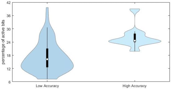 This conclusion is supported by the comparison of the distributions of the percentage of active bits in the true fingerprints for the compounds with high (