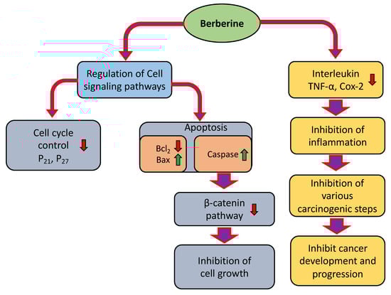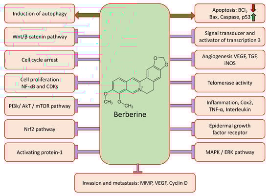 APA StyleAlmatroodi, S. A., Alsahli, M. A., & Rahmani, A. H. (2022). Berberine: An Important Emphasis on Its Anticancer Effects through Modulation of Various Cell Signaling Pathways. Molecules, 27(18), 5889. https://doi.org/10.3390/molecules27185889