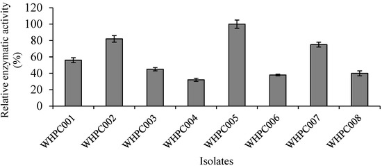 3.2. Identification of α-Galactosidase-Producing Strain WHPC005