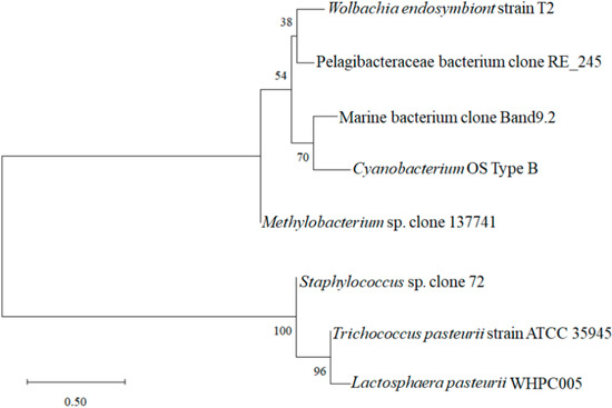 Moreover, the sequencing analysis indicated that WHPC005 shared 99% homology with Lactosphaera pasteurii by comparing the 16S rRNA sequences using the BLAST data package available on the NCBI website. A phylogenetic tree was constructed based on sequences of the 16S rRNA gene (Figure 3). WHPC005 shared the highest genetic relationship with Trichococcus pasteurii strain ATCC 35945, which belonged to genera of lactic acid bacteria, and in contrast, had the farest relationship with Wolbachia endosymbiont strain T2. Therefore, WHPC005 was thus verified as a strain of Lactosphaera pasteurii that produced the highest amount of α-galactosidase based on morphological and molecular evidence, and was designated as L. pasteurii WHPC005.