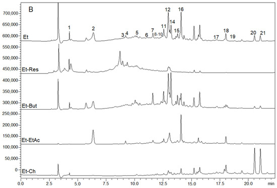 | Peak | Compound | Res a | But a | EtAc a | Ch a |