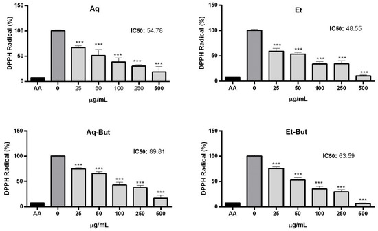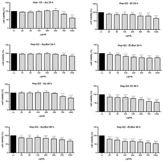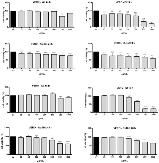 2.2. Cytotoxicity Evaluation of the Extracts and Solvent Fractions