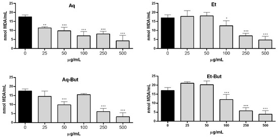 3.8. Antioxidant Activity of M. albicans Extract Measured by TBARS Assay