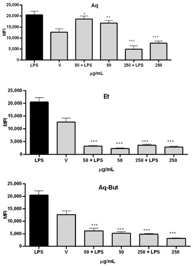 - Nascimento, A.M.; Maria-Ferreira, D.; dal Lin, F.T.; Kimura, A.; de Santana-Filho, A.P.; Werner, M.F.P.; Souza, L.M. Phytochemical analysis and anti-inflammatory evaluation of compounds from an aqueous extract of Croton cajucara Benth. J. Pharm. Biomed. Anal. 2017, 145, 821–830. [Google Scholar] [CrossRef] [PubMed]