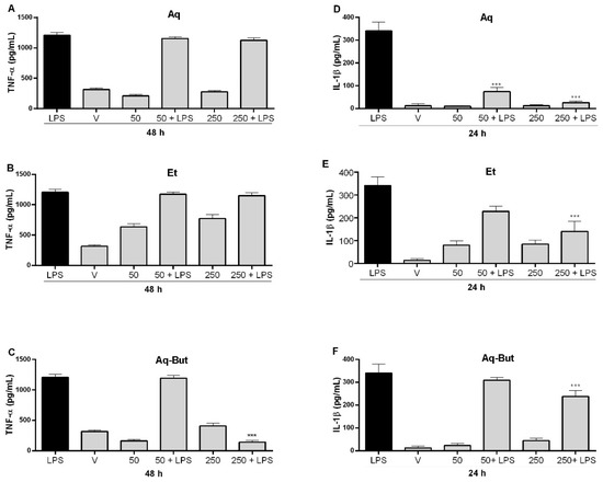 - Lima, T.C.; Matos, S.S.; Carvalho, T.F.; Silveira-Filho, A.J.; Couto, L.P.S.M.; Quintans-Júnior, L.J.; Quintansm, J.S.S.; Silva, A.M.O. Evidence for the involvement of IL-1β and TNF-α in anti-inflammatory effect and antioxidative stress profile of the standardized dried extract from Miconia albicans Sw. (Triana) Leaves (Melastomataceae). Acta Odontol. Scand. 2020, 259, 112908. [Google Scholar] [CrossRef] [PubMed]
