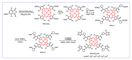 The synthesis route of MPcTcCl8-NIT catalysts.