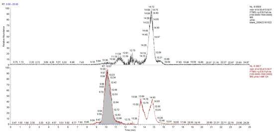 Chromatograms of m/z 415.25 were extracted from the control and the experimental group urine samples at the 12 h time point.