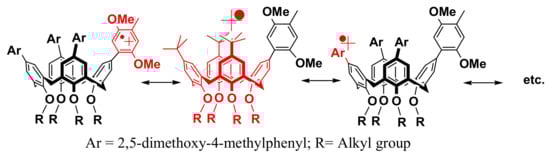 Rathore, R.; Lindeman, S.V.; Abdelwahed, S.H. Design, Synthesis, Electronic Properties, and X-ray Structural Characterization of Various Modified Electron-Rich Calixarene Derivatives and Their Conversion to Stable Cation Radical Salts. Molecules 2022, 27, 5994. https://doi.org/10.3390/molecules27185994