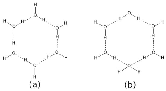 (a) Homodromic and (b) antidromic cycles within the structure of (H2O)6. These two motifs are, respectively, related to cooperative and anticooperative hydrogen bonding effects.
