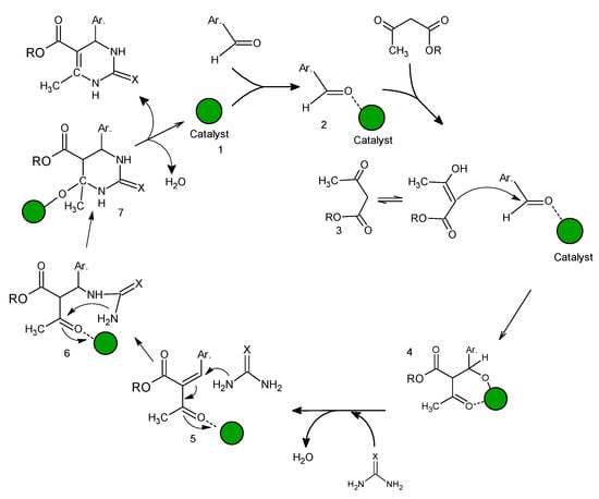 - Cepanec, I.; Litvić, M.; Filipan-Litvić, M.; Grüngold, I. Antimony (III) chloride-catalysed Biginelli reaction: A versatile method for the synthesis of dihydropyrimidinones through a different reaction mechanism. Tetrahedron 2007, 63, 11822–11827. [Google Scholar] [CrossRef]