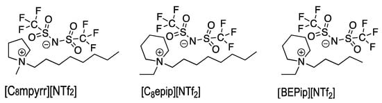 Pyrrolidinium- and piperidinium-based bis-(trifluoromethylsulfonyl)imide ionic liquids.