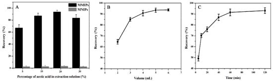- Jia, S.; Zhou, Y.; Li, J.; Gong, B.; Ma, S.; Ou, J. Highly selective enrichment and direct determination of imazethapyr residues from milk using magnetic solid-phase extraction based on restricted-access molecularly imprinted polymers. Anal. Methods 2021, 13, 426–435. [Google Scholar] [CrossRef]