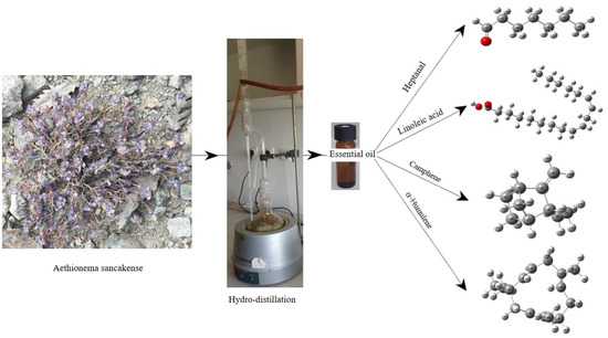 Analysis scheme for essential oil contents of the Aethionema sancakense plant.