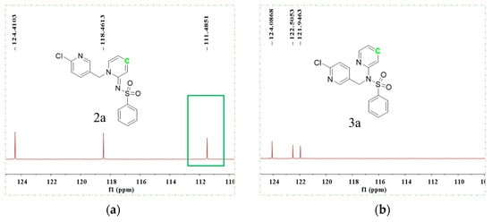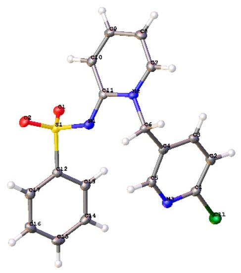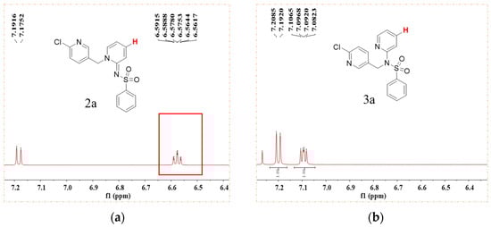 3.1.2. Preparation of (E)-N-(1-((6-chloropyridin-3-yl)methyl)pyridin-2(1H)-ylidene)benzenesulfonamide (2a) and N-((6-chloropyridin-3-yl)methyl)-N-(pyridin-2-yl)benzenesulfonamide (3a)