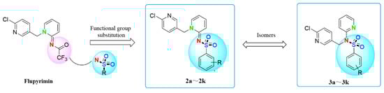 Lu, X.; Xu, H.; Zhang, X.; Sun, T.; Lin, Y.; Zhang, Y.; Li, H.; Li, X.; Yang, X.; Duan, H.; et al. Design, Synthesis and Bioactivity of Novel Low Bee-Toxicity Compounds Based on Flupyrimin. Molecules 2022, 27, 6133. https://doi.org/10.3390/molecules27186133