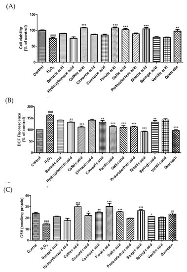 3.2. Cytoprotective Effect of Phenolic Acids against Hydrogen Peroxide