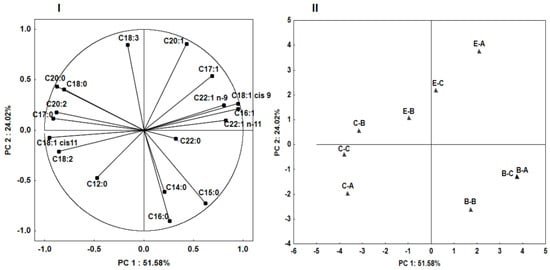 | Ʃ PUFA | 35.55 ± 3.56 c | 51.09 ± 4.08 a | 41.51 ± 9.08 b | 42.81 ± 5.16 b | 40.76 ± 0.51 c | 50.60 ± 1.57 a | 48.37 ± 5.20 b | 45.67 ± 5.91 b | 54.37 ± 2.96 a | 54.57 ± 1.70 a | 54.71 ± 2.50 a | 54.46 ± 2.28 a |
