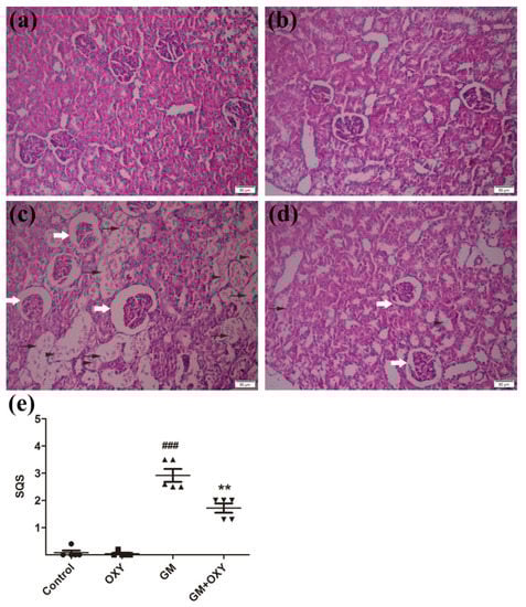 2.2. Oxymatrine Reduced Gentamicin-Induced Oxidative Stress in Renal Tissue
