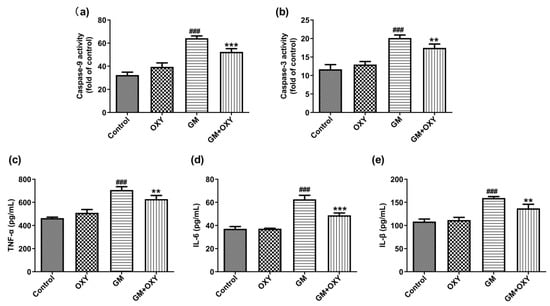 2.3. Oxymatrine Decreased Gentamicin-Induced Activation of Caspase-9 and Caspase-3 in Renal Tissues of Rats