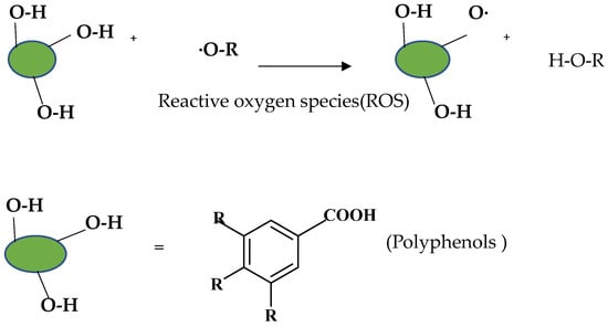 Figure 5. Removal of hydrogen, extinction of ROS, and formation of stabilized polyphenol radicals.