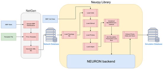 Our methodological framework is composed of the NetGen tool, which comprises the generation of network, the Neurpy library, which will simulate the network using a NEURON backend. Simulations will be used to generate training data for our machine learning classification methods. Figure 2 shows the overview of our methodology, which will be detailed described in the following.