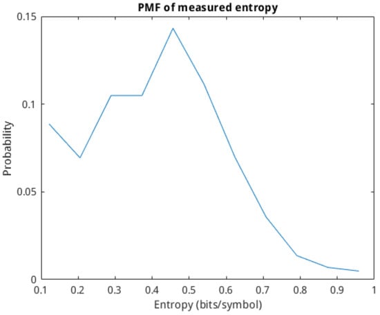 PMF of calculated single-cell entropy based on output spike trains.