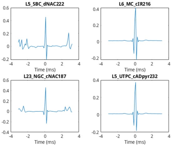 In this work, we focus on the neurons of the somatosensory cortex of a juvenile rat. The neocortex is typically treated as being a tightly-packed system of vertical structures (cortical columns) and classified into six interconnected horizontal layers, referred to as L1–L6 (with layers 2 and 3 often grouped and referred to as L2/3). Neurons can be classified by m-type, which defines the physical shape and layout of the neuron, and by e-type which defines the electrical characteristics of the cell. The neurons in this investigation are based on data retrieved from a single cortical column, where each neuron is pre-defined by layer, m-type, and e-type.