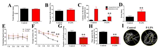 3.1. Effects of P. gingivalis LPS on Mouse Behavior