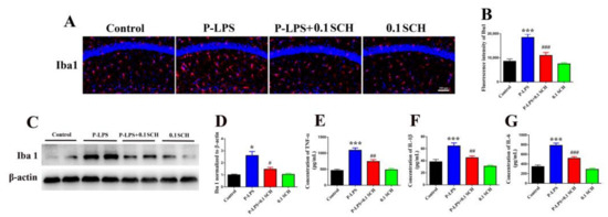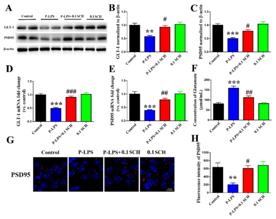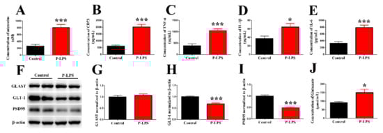 3.2. Effects of P. gingivalis LPS on the Adenosine, Inflammatory Factor, Glutamate Transporter, and PSD95 Levels
