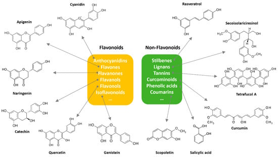 - Vuolo, M.M.; Lima, V.S.; Maróstica Junior, M.R. Chapter 2—Phenolic Compounds: Structure, Classification, and Antioxidant Power. In Bioactive Compounds; Woodhead Publishing: Cambridge, UK, 2019; pp. 33–50. [Google Scholar]