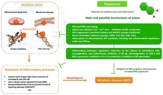 - Tian, C.; Hao, L.; Yi, W.; Ding, S.; Xu, F. Polyphenols, Oxidative Stress, and Metabolic Syndrome. Oxidative Med. Cell. Longev. 2020, 2020, 7398453. [Google Scholar] [CrossRef]