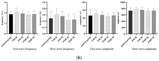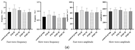 Gastrointestinal myoelectric activity is the basis of gastrointestinal motility and can reflect the status of gastric emptying and intestinal transport. Compared with the control group, PM enhanced electrical fast-wave and slow-wave frequencies and amplitudes in the stomach and duodenum. PMP had no significant effect on gastrointestinal myoelectric signals (Figure 5), the gastrointestinal myoelectricity after administration are shown in Supplementary Materials, Figure S1. This suggested that PM can enhance the frequency and amplitude of gastrointestinal myoelectric signals, thus resulting in the disorder of gastrointestinal myoelectric signaling and promoting its effect on the gastrointestinal tract.