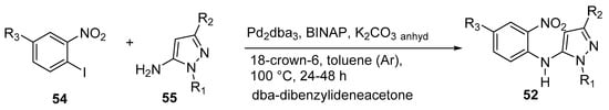 N-arylation Buchwald–Hartwig cross-coupling reaction of arylamines 44a–c.