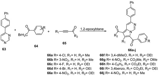 - Tatu, M.L.; Georgescu, E.; Boscornea, C.; Popa, M.M. Ungureanu, E.M. Synthesis and fluorescence of new 3-biphenylpyrrolo[1,2-c]pyrimidines. Arab. J. Chem. 2017, 10, 643–652. [Google Scholar] [CrossRef]
