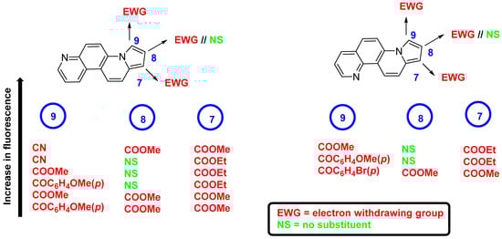 As possible applications, the authors claim that the push-pull fluorophore systems containing both electron-donating (EDG) and electron-withdrawing (EWG) groups in the vicinal position could be used as push–pull fluorophore systems. The obtained molecule types 10 and 11 have undergone a photophysical study to determine the potential practical uses in the construction of photoactive materials. The authors results are shown in Table 2.