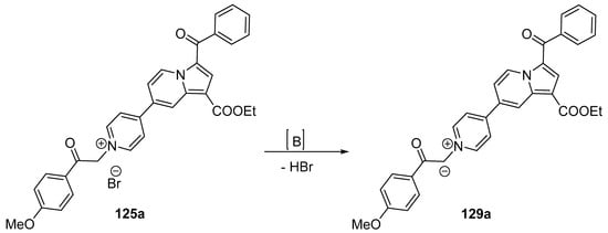 Absorption and emission spectra of indolizine derivatives 130a–c and their inclusion complexes 130a–c_CD were recorded at 1.0, 7.4, and 13.0 pH values. (1.0, 7.4, and 13.0) and the results compared. The indolizines 130a and 130b have similar absorption spectra, but slightly different than the absorption spectra of the indolizine 130c. At pH = 13.0, all the investigated indolizines have shown similar spectra. In the case of inclusion complexes 130a–c_CD, their absorption spectra at acidic and neutral pH values (1.0 and 7.4, respectively) are similar for all the investigated complexes, but different compared to the absorption spectra of the starting indolizines 130a–c. At basic pH values (pH = 13.0), the shape of the spectra of all complexes 130a–c_CD is drastically changed in comparison to each other and to the starting indolizines 130a–c.