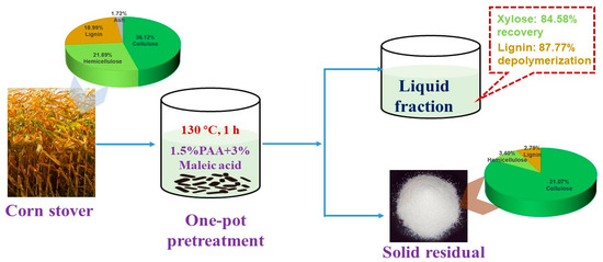 Lignocellulose fractionation of corn stover treated by 1.5 wt% PAA combined with 3 wt% maleic acid according to the data from reference [66].