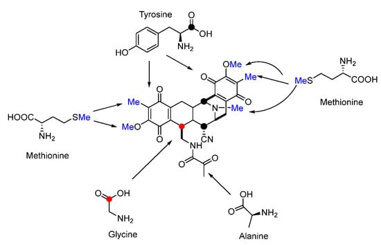 118. Fu, C.-Y.; Tang, M.-C.; Peng, C.; Li, L.; He, Y.-L.; Liu, W.; Tang, G.-L. Biosynthesis of 3-Hydroxy-5-Methyl-o-Methyltyrosine in the Saframycin/ Safracin Biosynthetic Pathway. J. Microbiol. Biotechnol. 2009, 19, 439–446. [Google Scholar] [CrossRef]