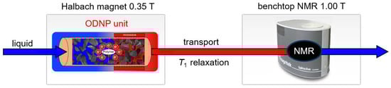 - Yoder, J.L.; Magnelind, P.E.; Espy, M.A.; Janicke, M.T. Exploring the Limits of Overhauser Dynamic Nuclear Polarization (O-DNP) for Portable Magnetic Resonance Detection of Low Gamma Nuclei. Appl. Magn. Reson. 2018, 49, 707–724. [Google Scholar] [CrossRef]
