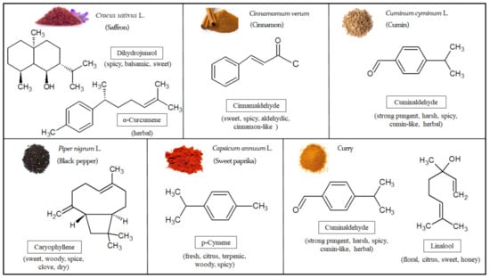 Since antiquity, spices have been used worldwide for a variety of purposes. From natural flavoring and preservative agents in beverages, pharmaceuticals, and foods, to ingredients in cosmetics and perfumes, to their use as preventive agents with potential benefits in human health [,,].