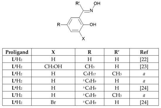 The syntheses of the proligands L1H4 [21], L6H2 [45], L8H2 [59], and L9H2 [60] have been reported previously. Details of the synthesis and characterization of the other proligands follow.