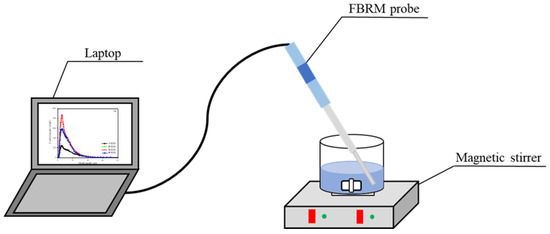 The focused beam reflectance measurement (FBRM, G400, Mettler Toledo, Columbus, OH, USA) system is shown in Figure 5. FBRM was a probe-based measurement method that inserted the instrument directly into the solution to study the change of particle size and counts over time, and allowed the measurement of the highly turbid sample [22,23]. In this study, FBRM was adopted to monitor the evolution of the floc size, amount, and micromorphology of the flocs online. The chord length of the square-weighted average diameter was used to characterize the size of the floc. A 200 mL beaker was filled with 0.5 g of mucilage and stirred at 500 r/min for 5 min. During this time, the counts and chord lengths of flocs were collected with the FBRM probe. The ICFBRM4.3 software was used to analyze the counts, chord lengths, and micromorphology of the flocs.