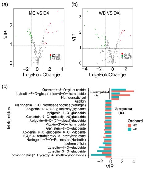 2.1. Qualitative and Quantitative Analysis of Flavonoid Metabolites