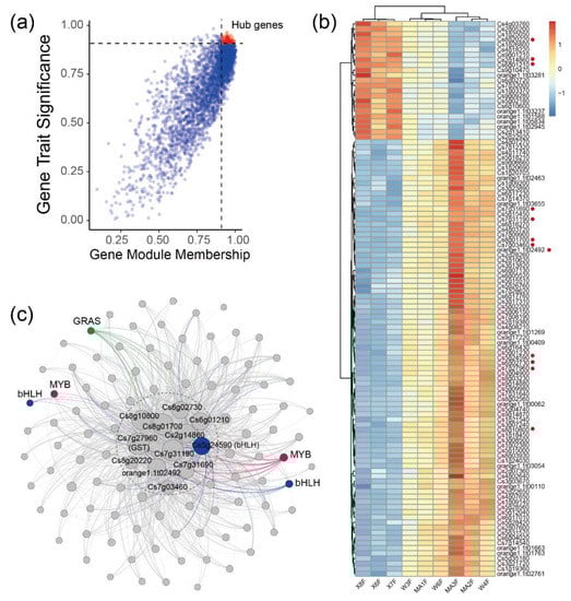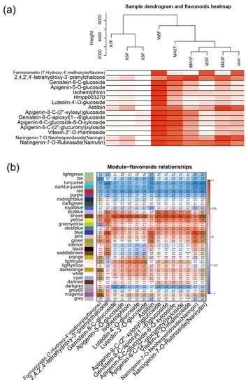 2.3. WGCNA Identifies Candidate Genes Associated with Flavonoid content