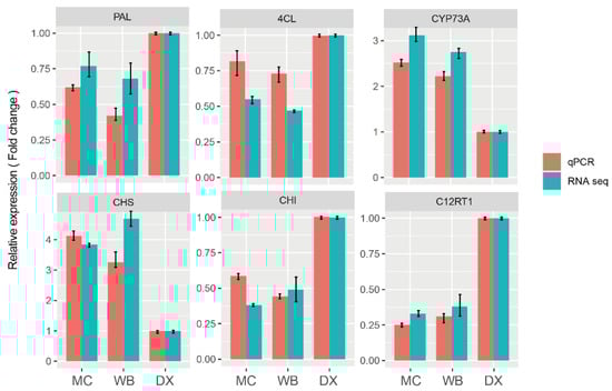 4.6. Validation of the RNA Sequence Data Using qRT-PCR