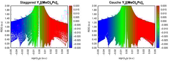 RDG vs. sign(λ2)ρ plots for staggered and gauche conformations of Y2[(MeO)8Pc]3.