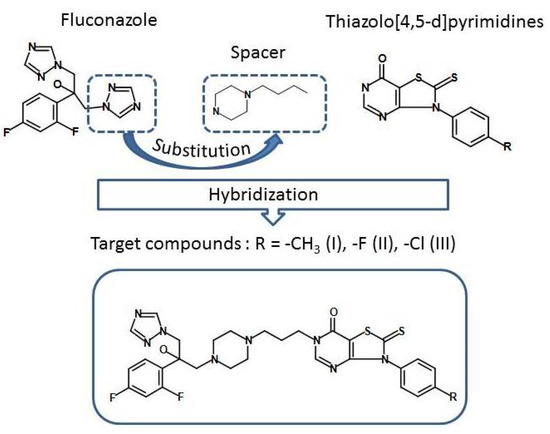 Design of novel target hybrids fluconazole and thiazolo[4,5-d]pyrimidine.