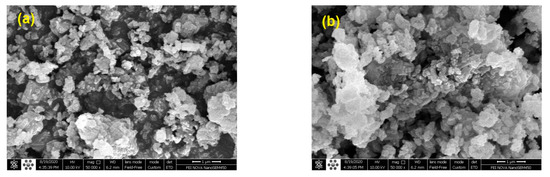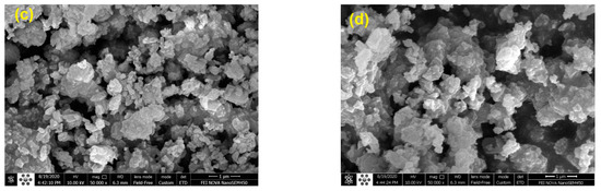 Figure 8 depicts the surface morphology of the parent HZSM-5 and lanthanum-modified HZSM-5 zeolite catalysts with different lanthanum-loading-weight percentage (5, 10, and 15%). Based on Figure 8, we observed that all the samples exhibit well-crystalline particles of the nanometer scale, which form agglomerates. It is also observed from images that desilication breaks up some of the particles into smaller fragments [84,85].