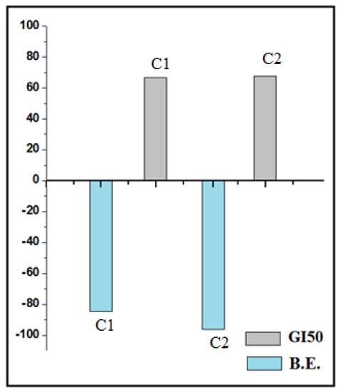 Correlation plot of binding energy and GI50 for C1 and C2.